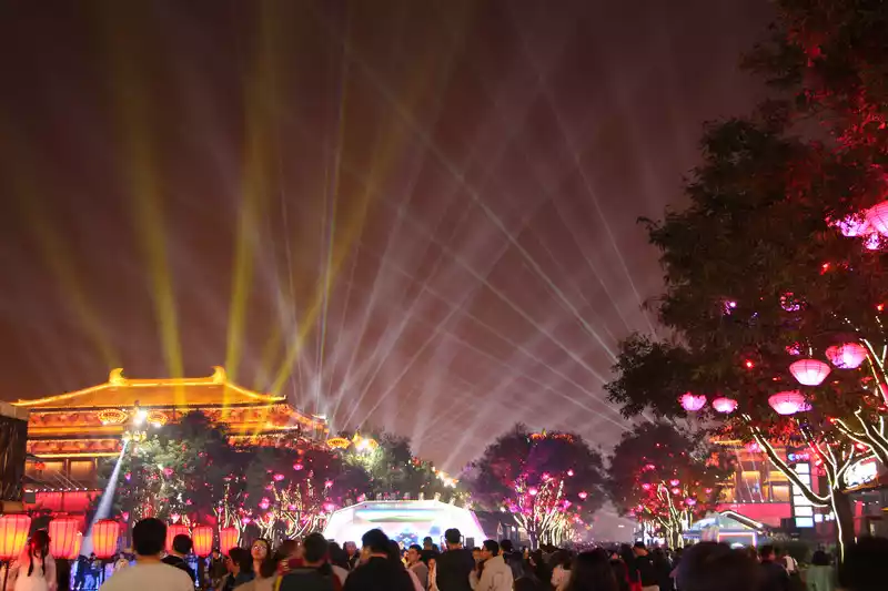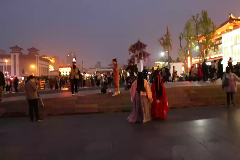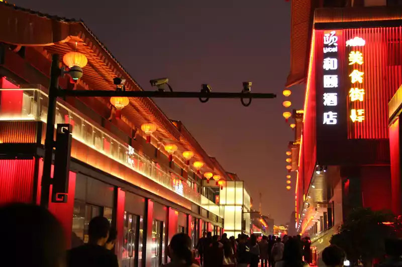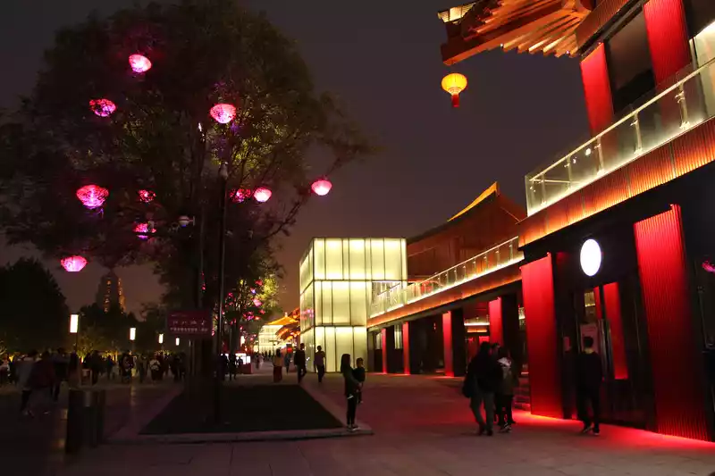 Datang Sleepless City is still very beautiful, at night under the lights are very Chinese, there are many people, the whole street is very long, while walking around can walk for about 1 hour.
