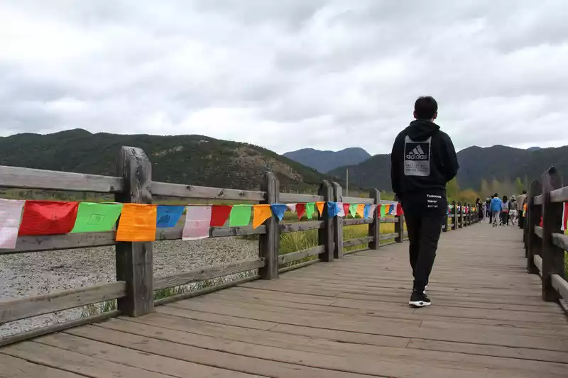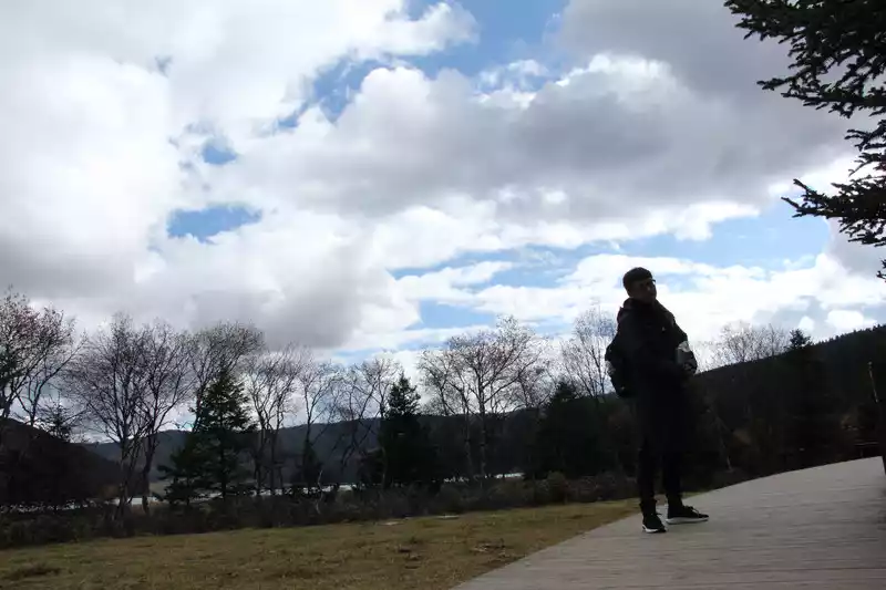 Thealtitude in Pudacuo National Park is still much higher than that of the urban area, with an average of more than 3,000, and some places are close to 4,000, and it is a long way to go. After getting off the bus, it was obvious that the place was still very cold, and we both wore single clothes, so we rented two more coats.