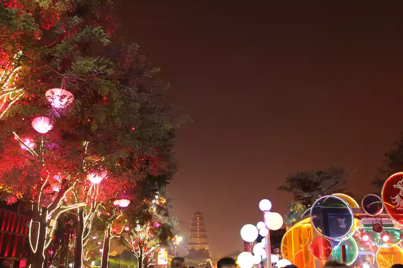 Asnight falls, the Big Wild Goose Pagoda Square also ushers in its peak