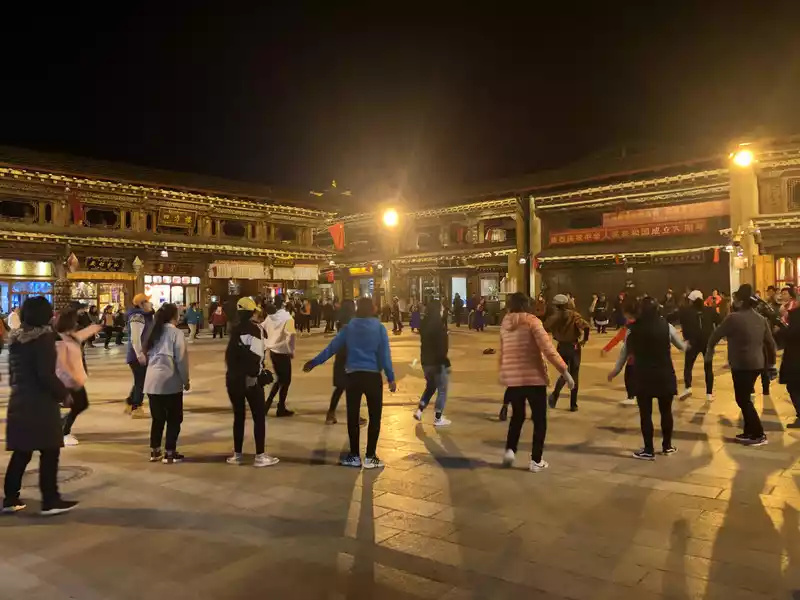Every place can't stop the enthusiasm of the aunts in the square, and the collective square dance located in the square of the ancient city of Dukezong. It is very enthusiastic, bold and Tibetan.