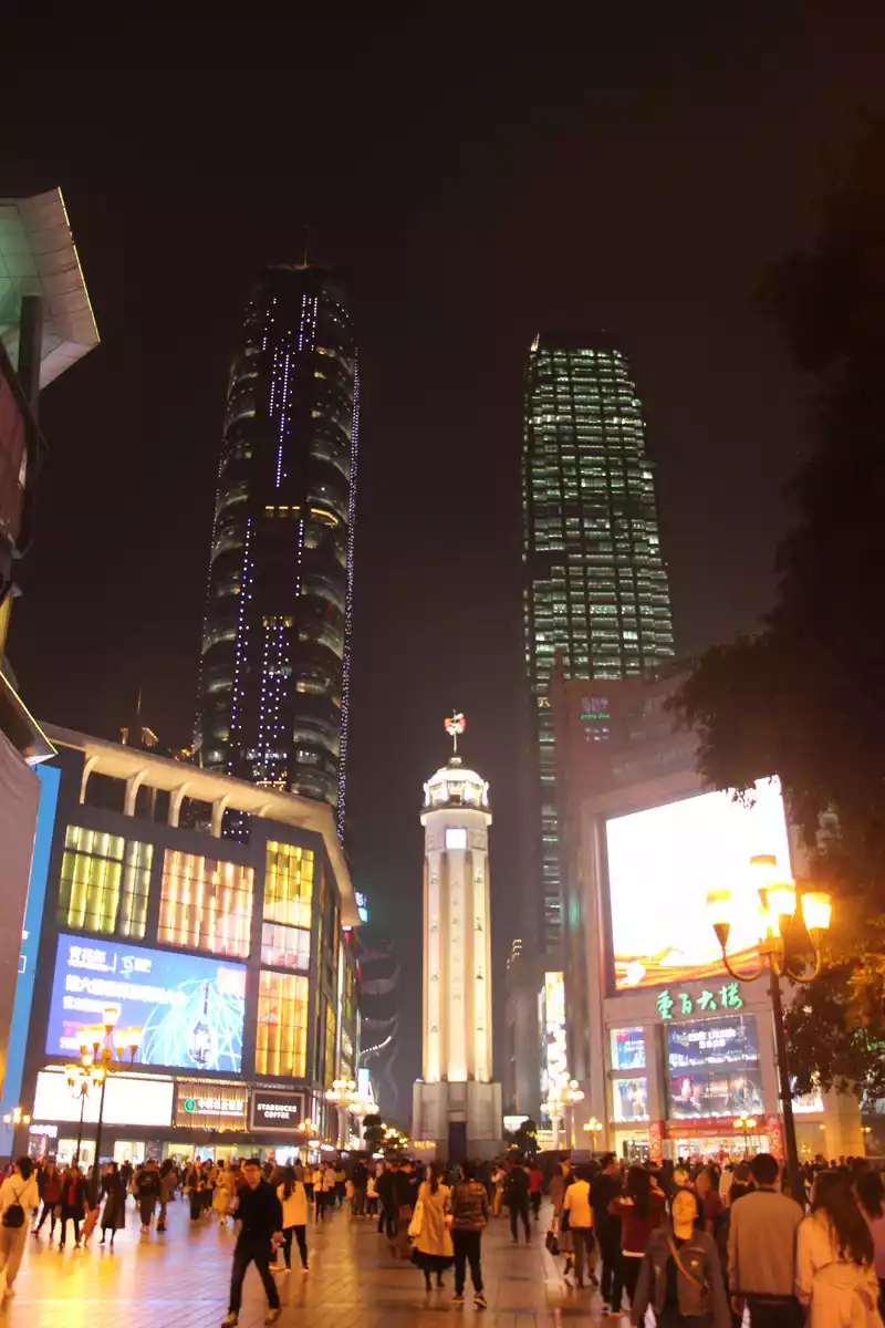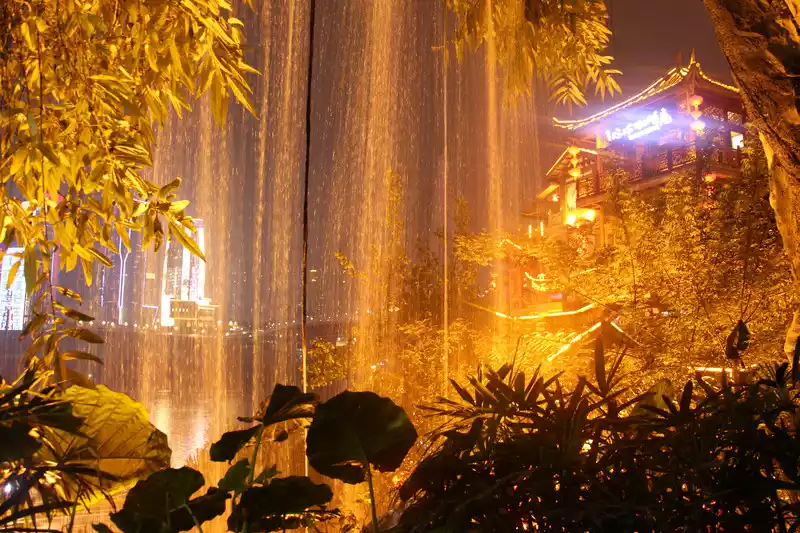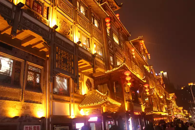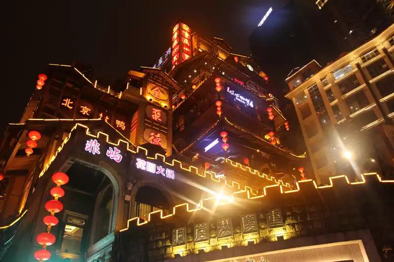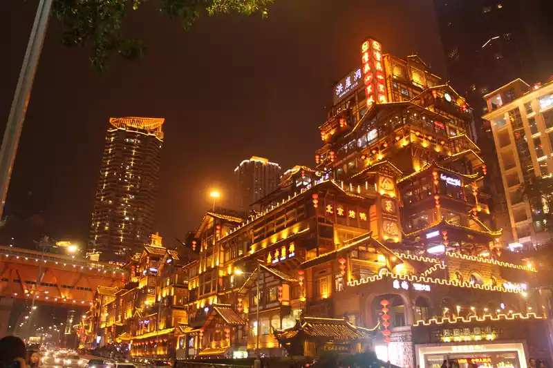 It wasbasically dark on the pedestrian street back from Ciqikou, so I went back to the hotel to rest for a while, and took advantage of the night to go to the most special place in Chongqing, Hongya Cave.