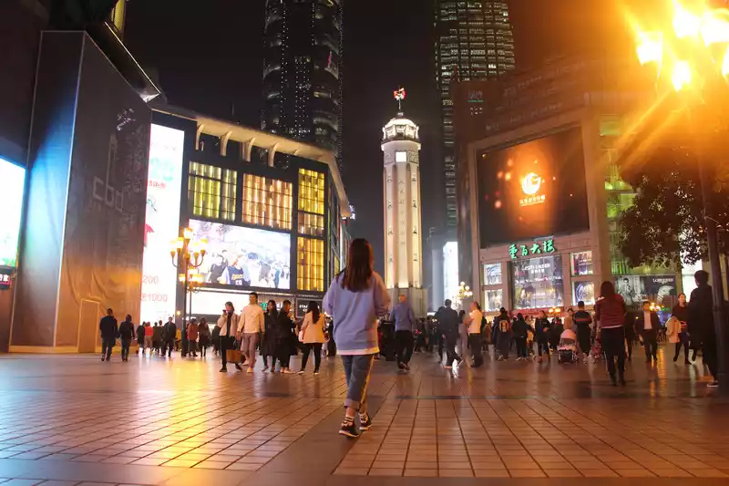 Chongqing's nightlife should be very rich. It is already eight or nine o'clock when I return to Jiefangbei Pedestrian Street after visiting Hongya Cave, and the pedestrian street is still crowded with people, and most of them may also be tourists.