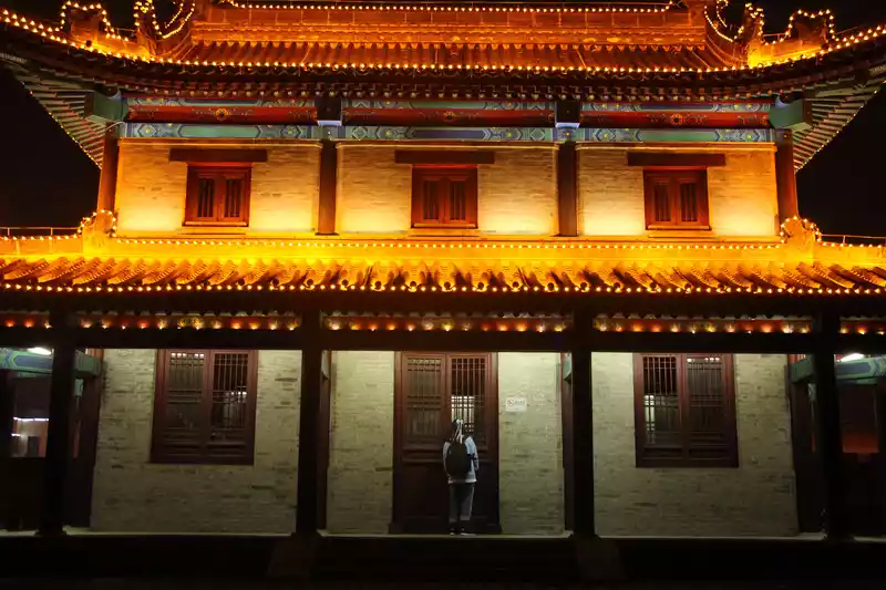 Thereare four main gates in the Xi'an city wall, the east gate (Changle Gate), the south gate (Yongning Gate), the west gate (Anding Gate), and the north (Anyuan Gate), I feel that the Yongning Gate is better, and the south gate is also relatively close to the bell tower, and you can directly see the bell tower at night from the south gate.