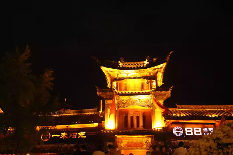 The temperature difference between day and night in Shangri-La is still very large, and it is already very cold at night, but it still does not stop the desire to see the night view of the ancient city.