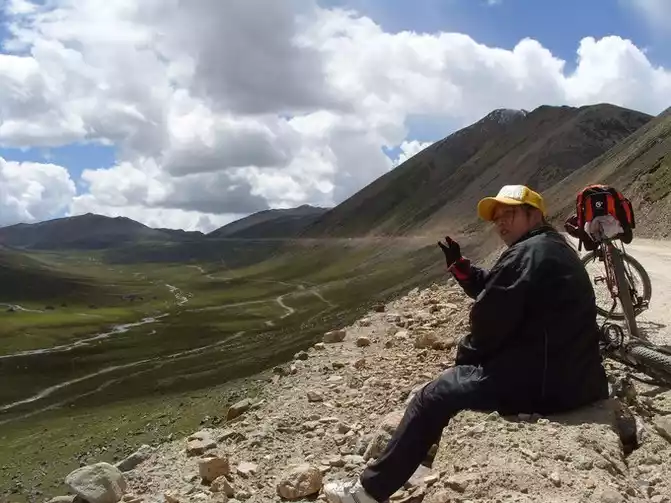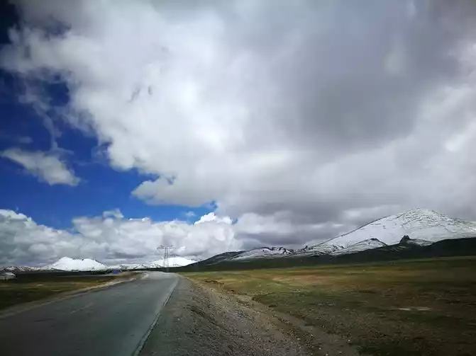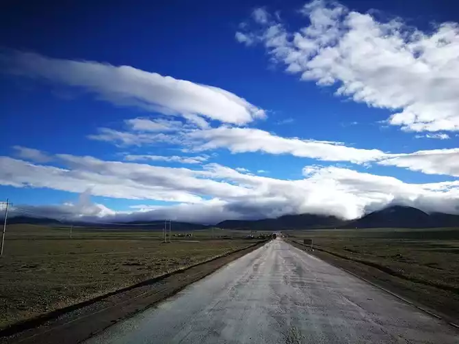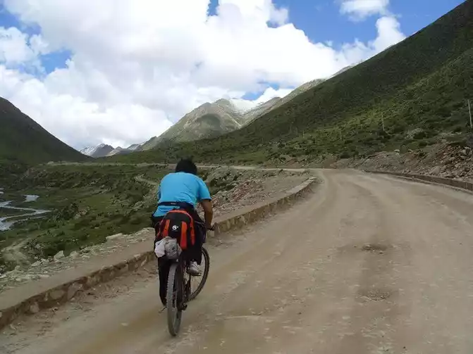 The scenery of the Qinghai-Tibet Line is very good, and the road is overwhelmed. There are fewer and fewer cyclists.