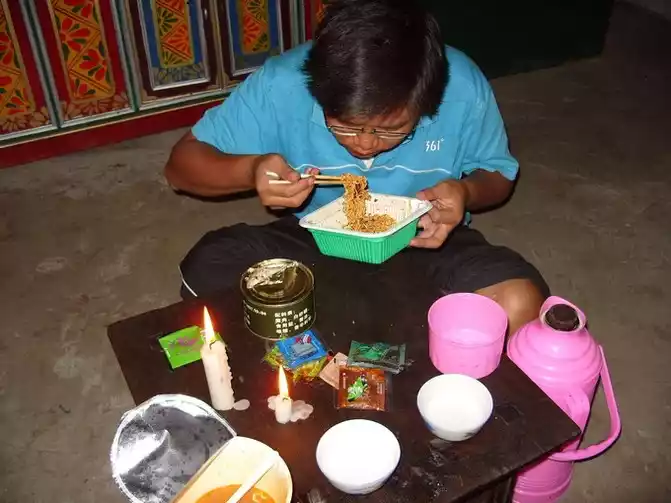 After a few days of rest, take the Qinghai-Tibet Line back. Due to the rush, all the original plans were disrupted. After passing through this pass, I found that there was a Taoist class not far away that was well built, and there was a basketball court. We are going to set up a tent on this basketball court. When I went in and asked, it turned out that there are many self-driving tourists like us staying here, and the road class here can also stay and provide high-level rescue in addition to maintaining the road. Here I met a middle-aged man riding a motorcycle and a Tibetan who went to Lhasa and returned to Qinghai after a pilgrimage. The Tibetans reminded me not to eat too much at night, it was easy to have difficulty breathing, and before I knew it, I had eaten a lot. In fact, on the Qinghai-Tibet Line, I was numb, and I had to drive alone for more than ten hours a day, and I didn't know how hungry I was, and I didn't feel much to eat.