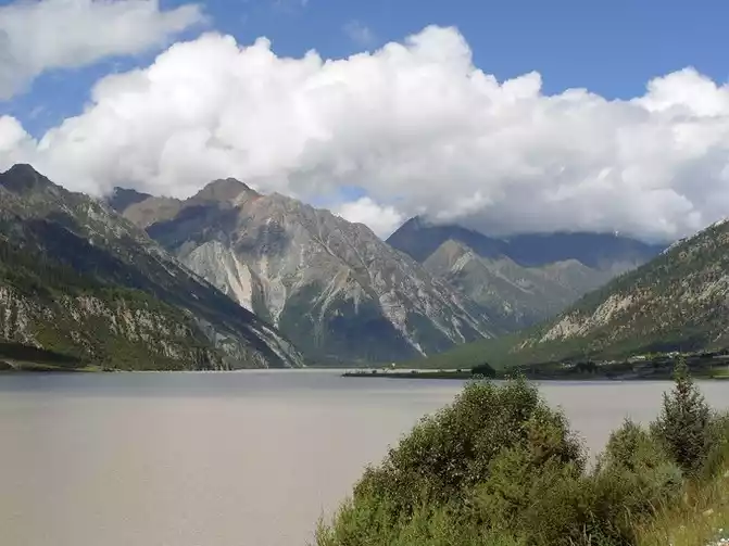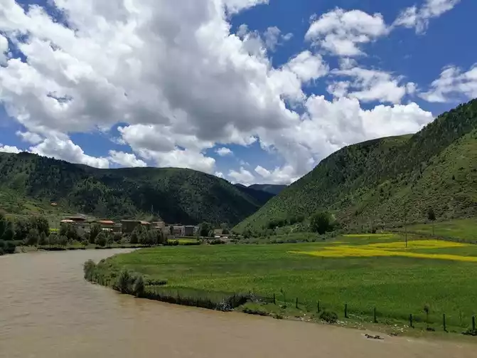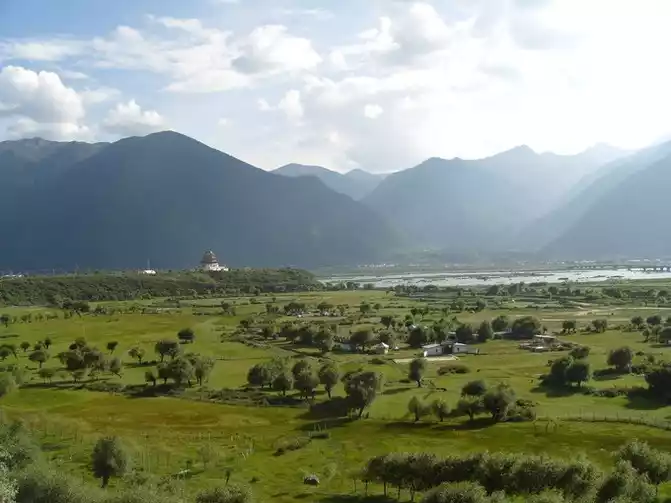 Seven years later, the Niyang River built the Linla Expressway. We took the newly opened Linla Expressway and went all the way to Lhasa. The Linla Expressway is built on the Niyang River, the Niyang River no longer has the majestic and magnificent and still water deep flow of the past, and now the water level of the Niyang River has dropped sharply, and the river water is yellow, and I really can't imagine that this is the Niyang River that year without seeing the sign.At that time, I stood by the Niyang River, as open as standing on the seaside, when the breeze blew, the wet and cold breath of the lake came to my face, sandwiched with the original body temperature of the melting ice and snow of the mountains, which caught people off guard and unexpectedly encountered the taste of hundreds of millions of years ago, and I couldn't help but shudder. Take a deep breath and exhale, as if you have melted into the real Tibet.