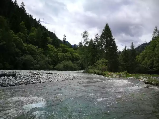 As soon as I left Chengdu, the weather began to get cooler, and I wore short sleeves when it rained yesterday, and I had to wear a coat this morning. The camping place is 20 meters away from the fried dough tiao river, the water flow is very fast, roaring all night, calm down, you will feel a little natural.