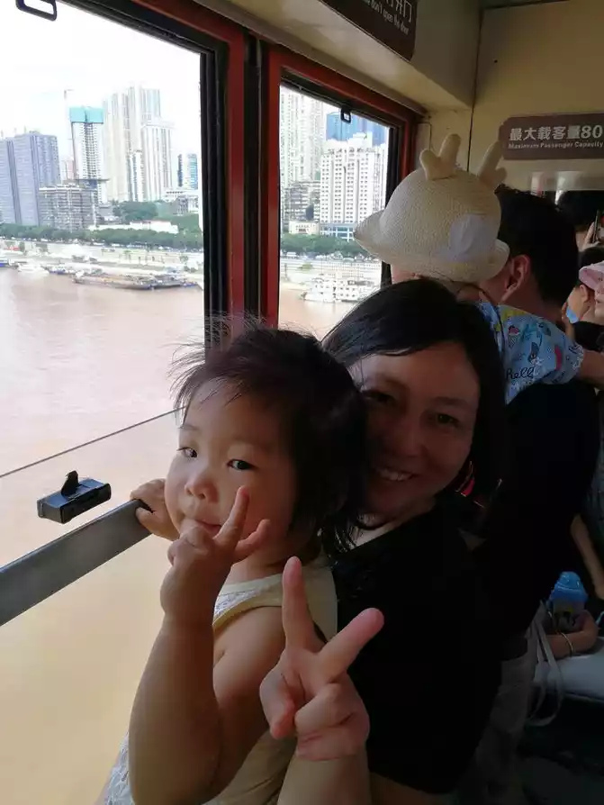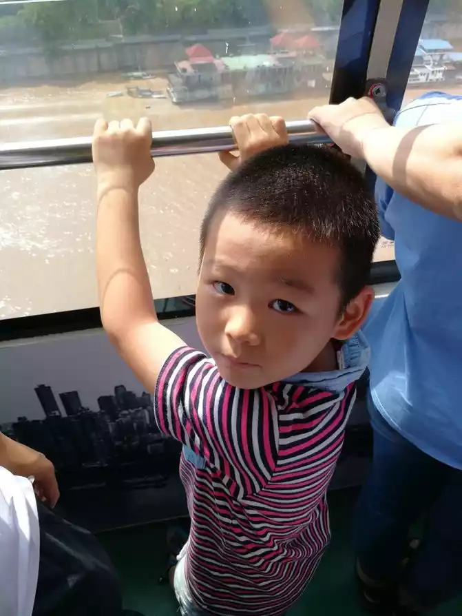 It took more than two hours to get on the Yangtze River ropeway the next day. Occupy a window position for Xiao Wang. I was afraid of being too high to look at it. He thought it was very novel.