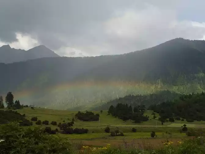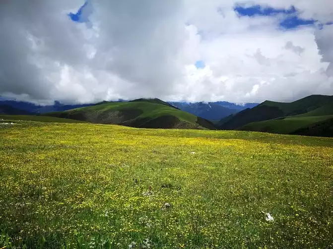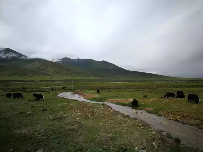 The clouds outside the sky were rolling and the clouds were unfolding, and the yaks were all over the ground, sometimes pouring heavy rain, and sometimes the sky was clear and the air was clear. Wildflowers are everywhere, grass is competing, streams are gurgling, and green mountains are quiet. Looking far away, the vitality of heaven and earth is in full view. When I took the Yunnan-Tibet Line in 2011, I missed this section and made up for it today.