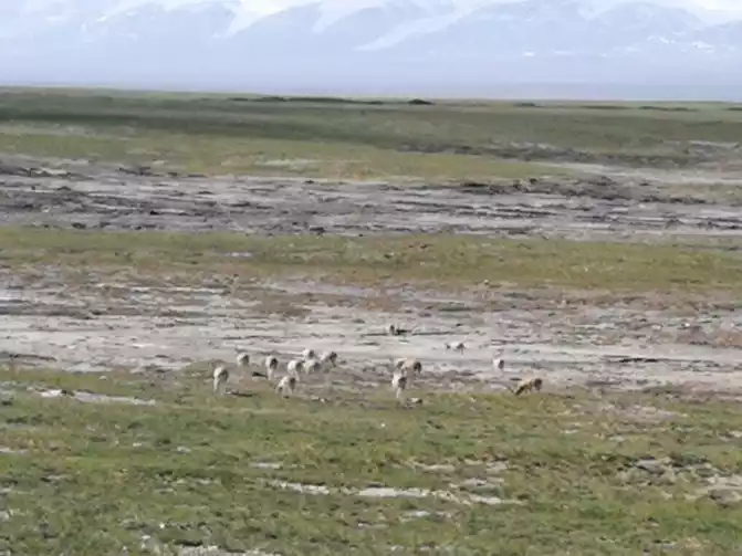 Really saw a wild antelope here, I zoomed in and looked a bit blurry. Just now it was still a clear sky, and suddenly a blizzard fell, as if it was a different world.