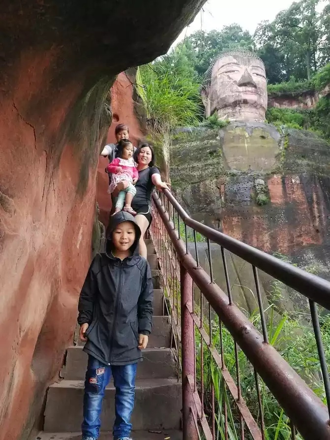 In the afternoon, from Chongqing to Chengdu, I went to Leshan to see the Big Buddha. It's a little rainy, no one is there.I handed over the explanation I heard last time I came to Leshan to them, read thousands of books, and traveled thousands of miles.