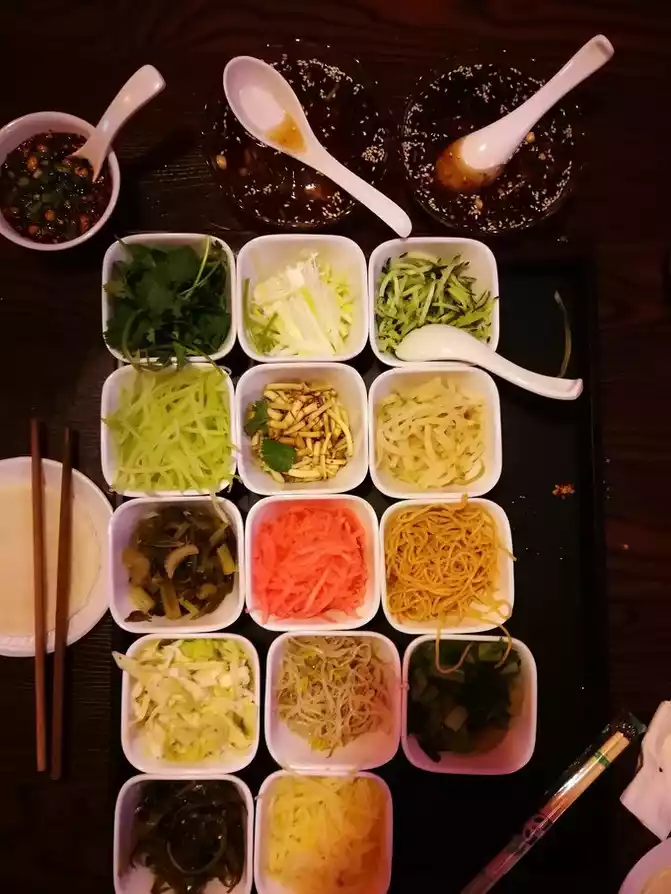 The first stop arrived in Guiyang, and after settling the others, I went out to find a popular "silk doll" in my family to solve my doubts. Some vegetables are wrapped in dough, poured with juice and eaten, and Jing and I laughed as we ate, feeling that it was not worth it.