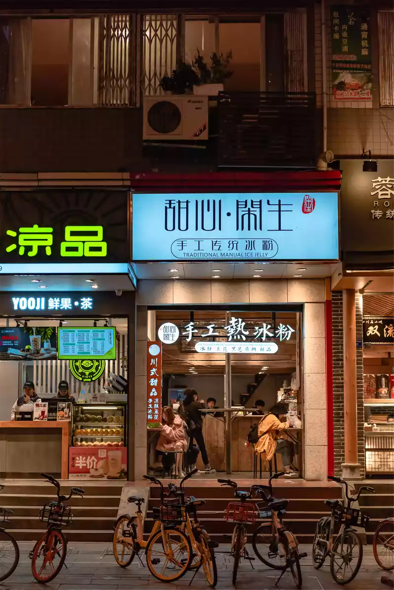 After visiting the eastern suburbs, my friend sent us back to Taikoo Li. After playing for an afternoon, I was a little tired and found a dessert shop to rest. We came to Sweetheart Xiansheng, which is the successor of traditional handmade ice powder, which inherits the traditional ice powder making process of the older generation of Leshan while integrating Western and Hong Kong dessert methods. Before coming to Chengdu, I had been listening to the ice powder of my colleague Amway in Chengdu.