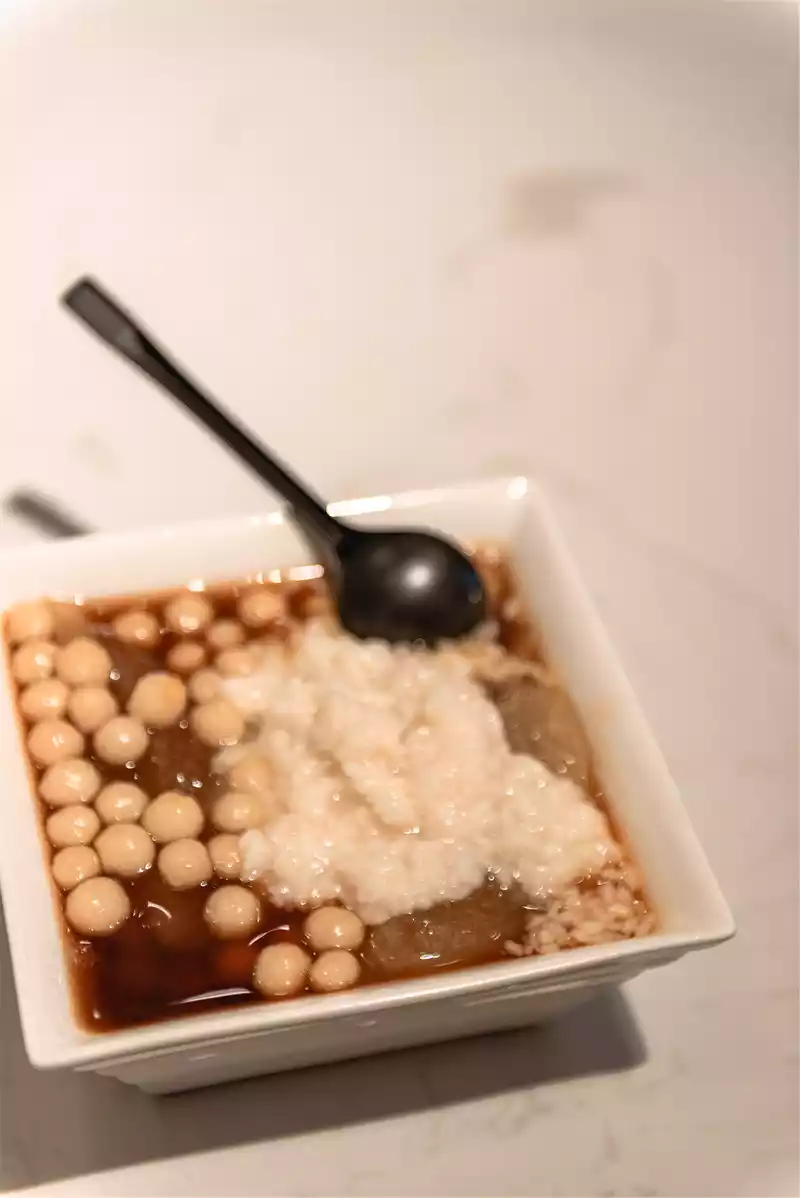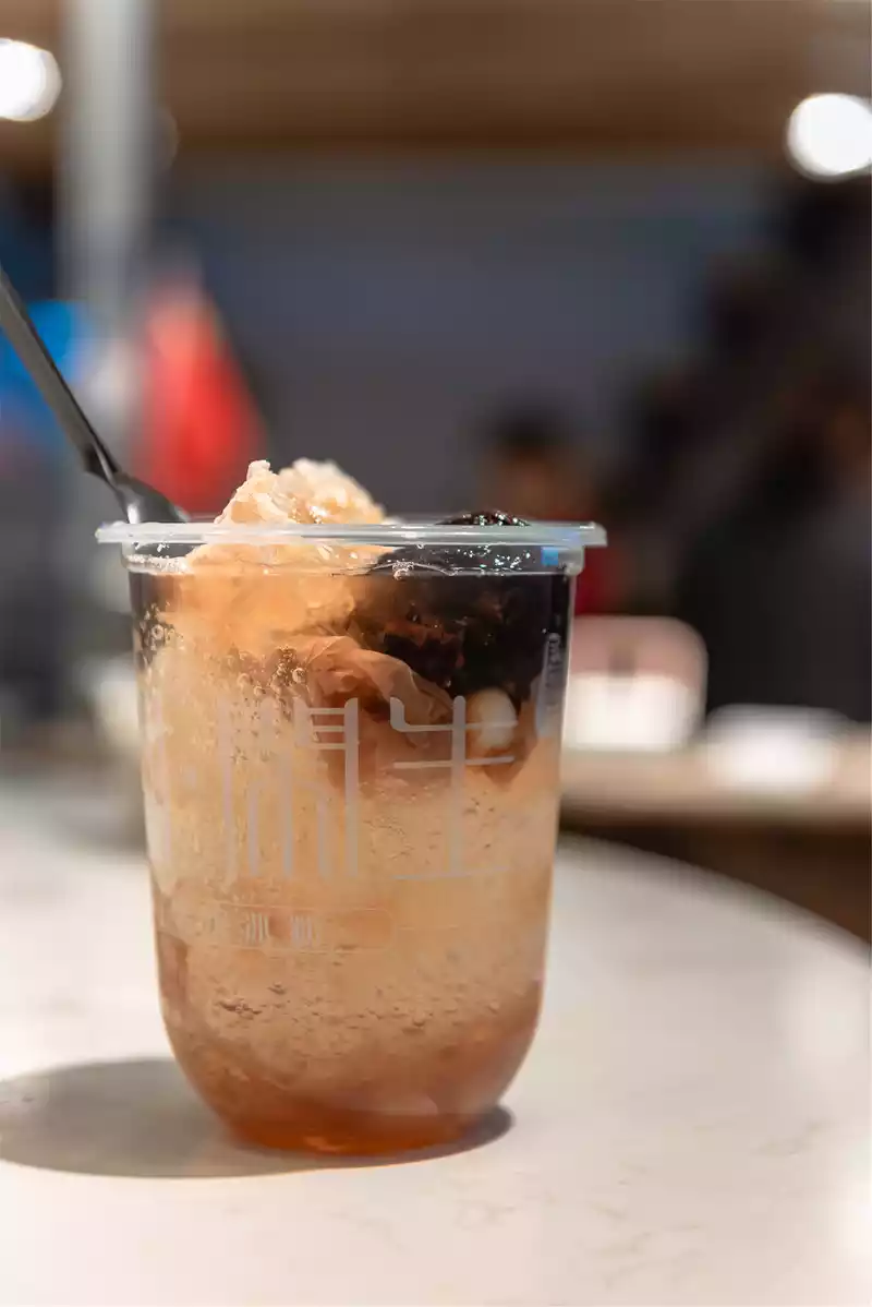 The group of four people each ordered what they wanted to eat. It is also fortunate to see the boss making ice powder by hand while waiting, and the surface of traditional handmade ice powder will be covered with breathable water droplets, which is a rare knowledge for us laymen. I ordered sand brown sugar ice powder with small meatballs, and my girlfriend ordered honeycomb rose honey ice powder, even from the perspective of appearance alone, it is very tempting. The ingredients in the ice powder are very real, and the glutinous rice balls are sweet and soft, which is very suitable for glutinous rice lovers like me. I remember that Xiamen's four-fruit soup sometimes puts some ice powder, but in terms of taste and taste, it is far less delicious than the dessert.