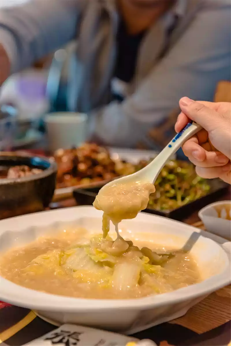 Although I am a southerner, my ability to eat spicy food is not small, and I still remember the taste of Yuan Laosi's red pot, and the spicy and fresh aroma is vividly interpreted in one pot. Grandma's crispy pork is a more profound appetizer, crispy and tempting. The most outstanding in the hot pot dishes are the mother's dumplings and spicy tender beef, the former has a layer of rose petals outside the crispy meatballs, and the latter has a very good meat quality, which does not rot for a long time and is fragrant in the mouth. As for tripe, duck intestines, fish fillets, fat beef, and brown sugar glutinous rice cakes, they are all leaders in the Chengdu hot pot industry. Their service is also very good, enthusiastic but not warm, considerate but not "close to the face", which is very much to our liking. Yuan Laosi's hot pot is impressive, allowing friends who are rare to get together have more communication and imagination for the future.
