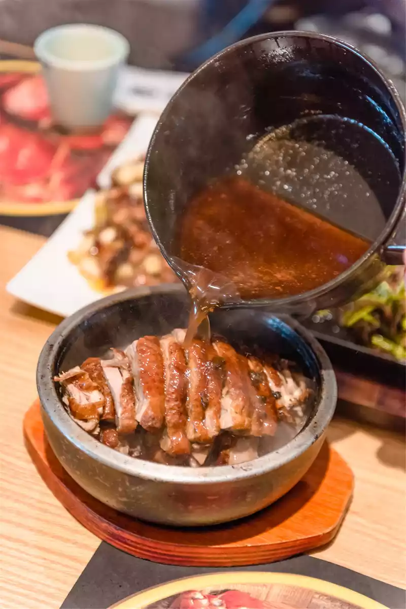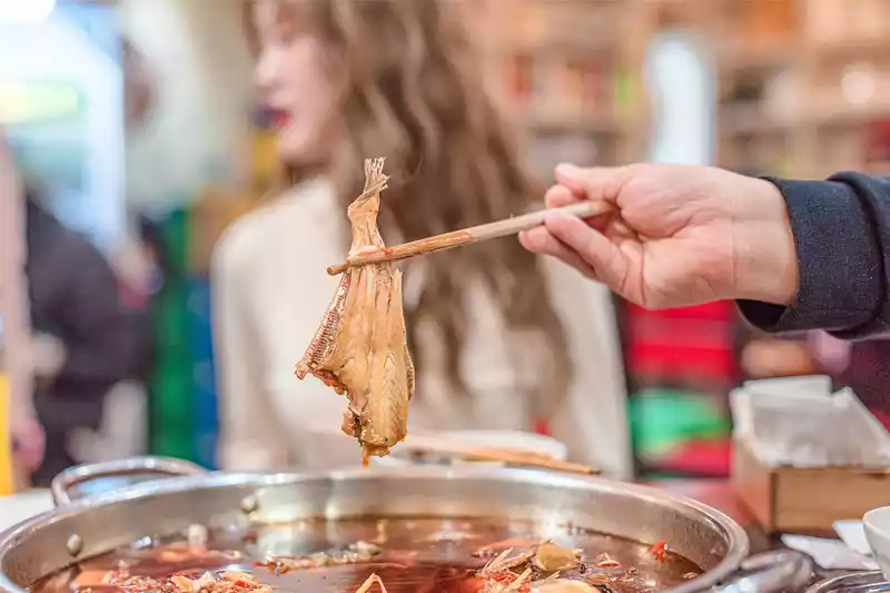 Enjoy authentic hot pot and delicious ice powder, how can you not try Chengdu's authentic Sichuan cuisine? When I left the geometric bookstore, it was already dark, and pedestrians were in a hurry to find food to comfort their souls. Dinner was set at Zhang Roast Duck (Qingshiqiao Main Store), which is also an authentic Sichuan dish recommended by friends in Chengdu.