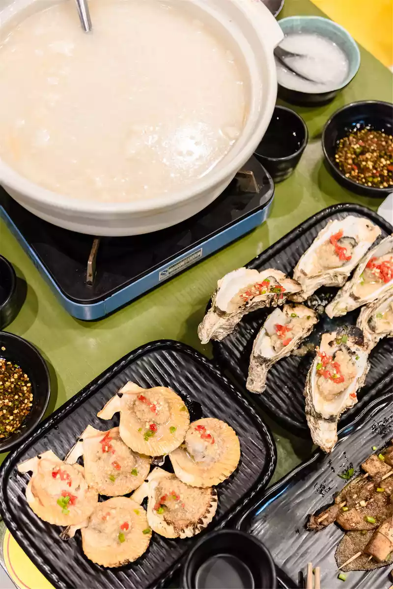 At that time, we were early, but the group of four still waited for almost 20 minutes. Seafood porridge, grilled oysters, grilled scallops, grilled abalone, we ordered several dishes that could best test the truth. The evening breeze in March came and went with groups of diners, and it may be hard for you to imagine that the plates on the table were changed again by our four girls. The taste is tender and juicy, the meat is plump, and the heat is just right, which is the characteristics of Wang Xiaoyster, even in Xiamen, it is rare to eat such a clean and fat grilled oyster, it is really "good"!