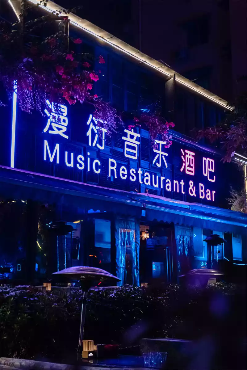 Driving with friends to the side of the Jiuyan Bridge, through the night view, the lights are in a trance, and there is a faint magnificence of "Changhong Lying Wave". On both sides of us are the most famous bar street in Chengdu. All kinds of bars accommodate young Chengdu people and Sichuan University students here. Here, young hearts collide with each other, with music, love, and stories of their own efforts to grow. There is wine here, will you come?