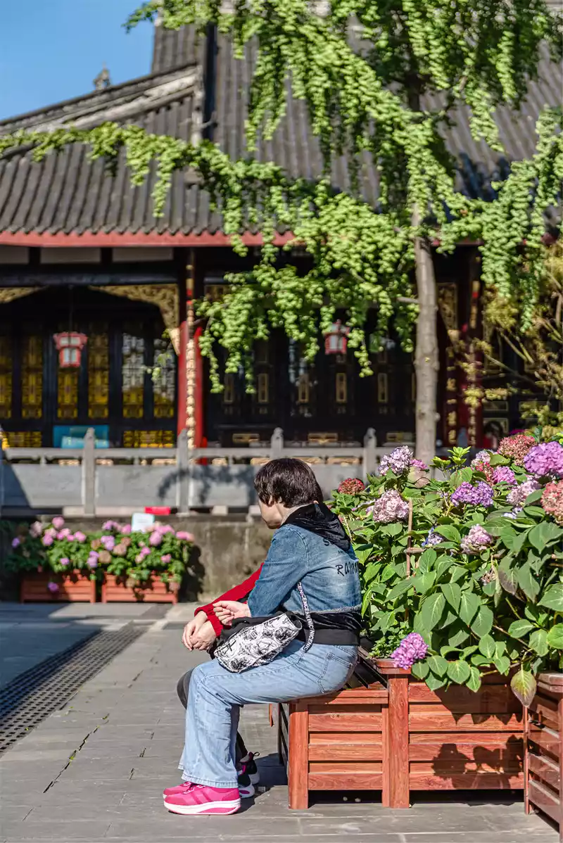 The weather in Chengdu is very comfortable, the sun is not piercing, and spring is everywhere as far as the eye can see. The camera that my girlfriend carries with her has been working since the moment she goes out. The first stop in Chengdu is the Daci Temple in Taikoo Li, and it is hard to imagine that in such a prosperous area, there will be an ancient temple with a history of more than 1,000 years. According to Chengdu friends who came to meet, the five words "Ancient Great Shengci Temple" on the gate of Daci Temple are inscriptions from the Guangxu period of the Qing Dynasty, which is a priceless antique. Chengdu's bowl cover tea is famous, and in Taikoo, I am afraid that only authentic teahouses can be found in Taici Temple.