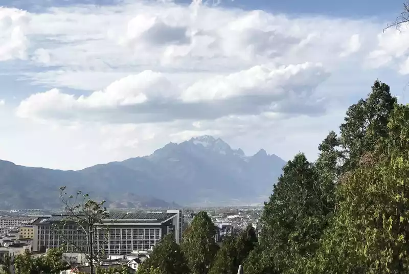 Lijiang Ancient City Lion Rock Observation Deck, the west of the ancient city is the Jade Dragon Snow Mountain, and you can see the peak of the Jade Dragon Snow Mountain.