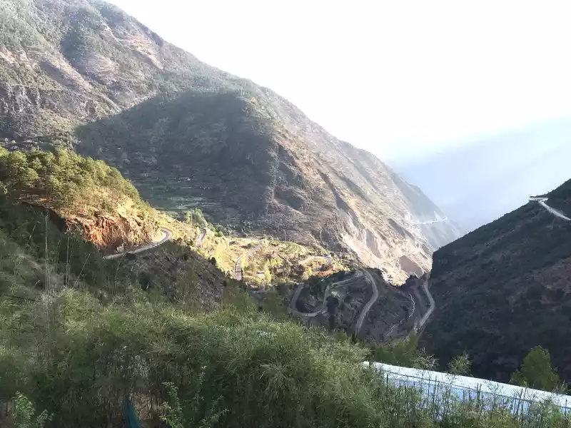 Walk along the Lining Highway, the Jinsha River is under the mountain, and you will have to walk the bridge over the river later.