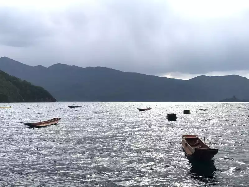 Lugu Lake It will be almost noon, and the light is not very strong.But the weather here is unpredictable, this day of exposure, cloudiness, rain have all been experienced, and it is still staggered, and there is no regularity, so hats, sunglasses, umbrellas, raincoats, etc., remember to be ready at any time!