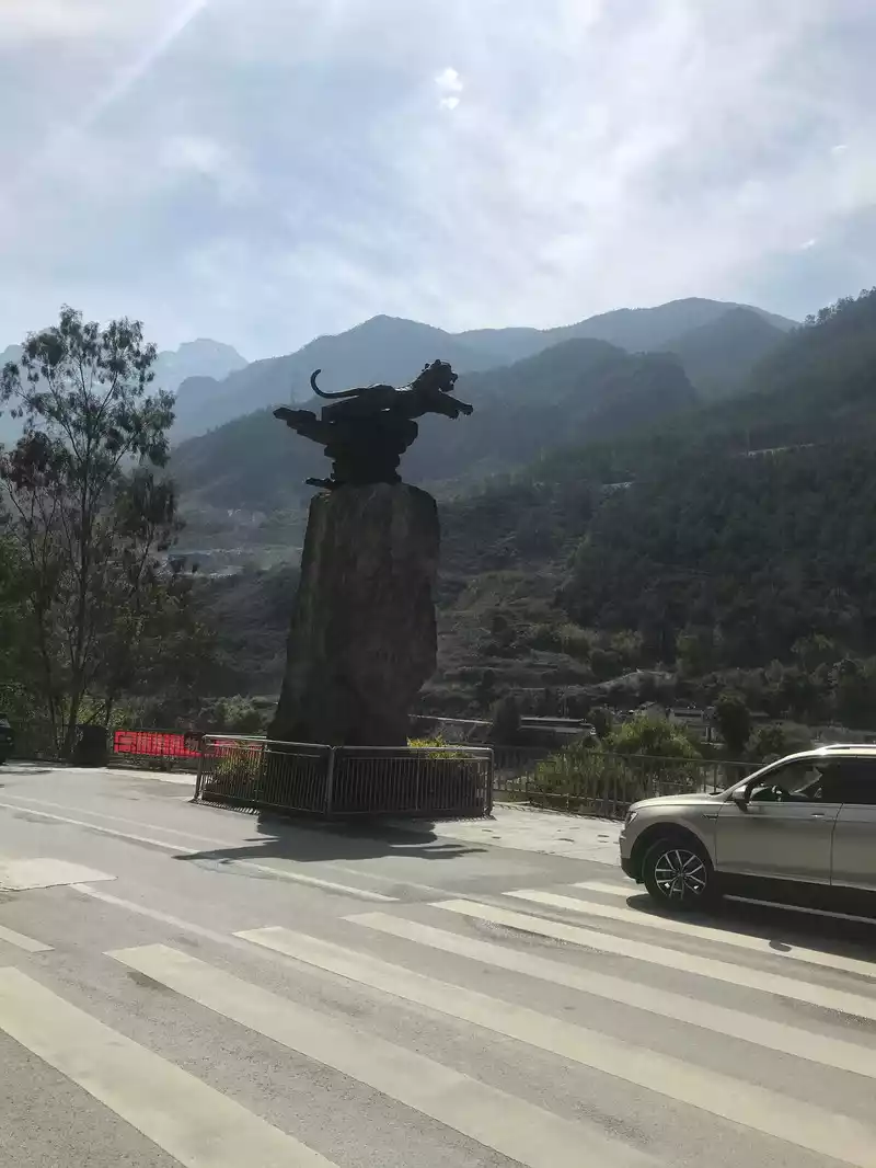 Tiger Leaping Gorge (Lijiang Section) The majestic tiger sculpture by the Jinsha River