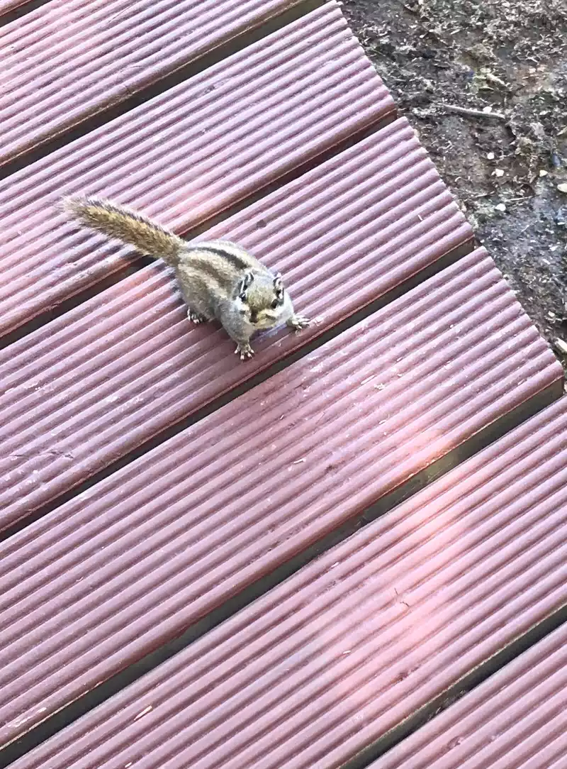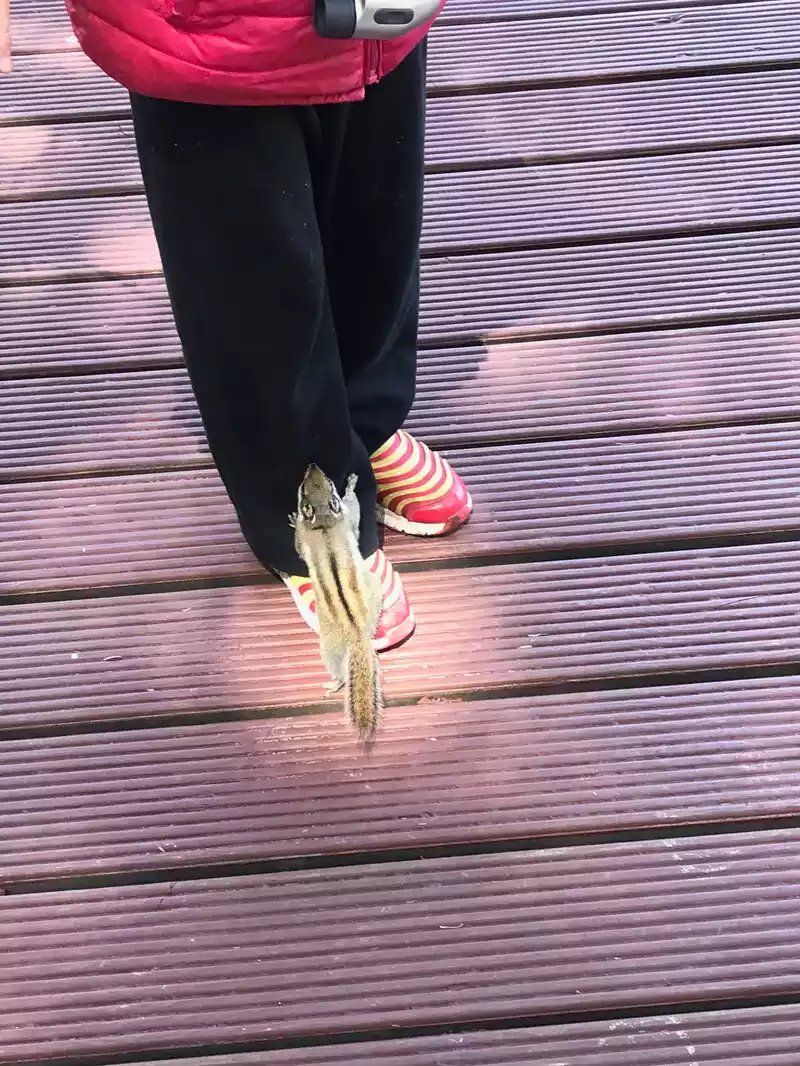 The little squirrel waiting to forage, but unfortunately he didn't bring anything he could eat. However, the scenic spot also recommends not feeding wild animals at will.