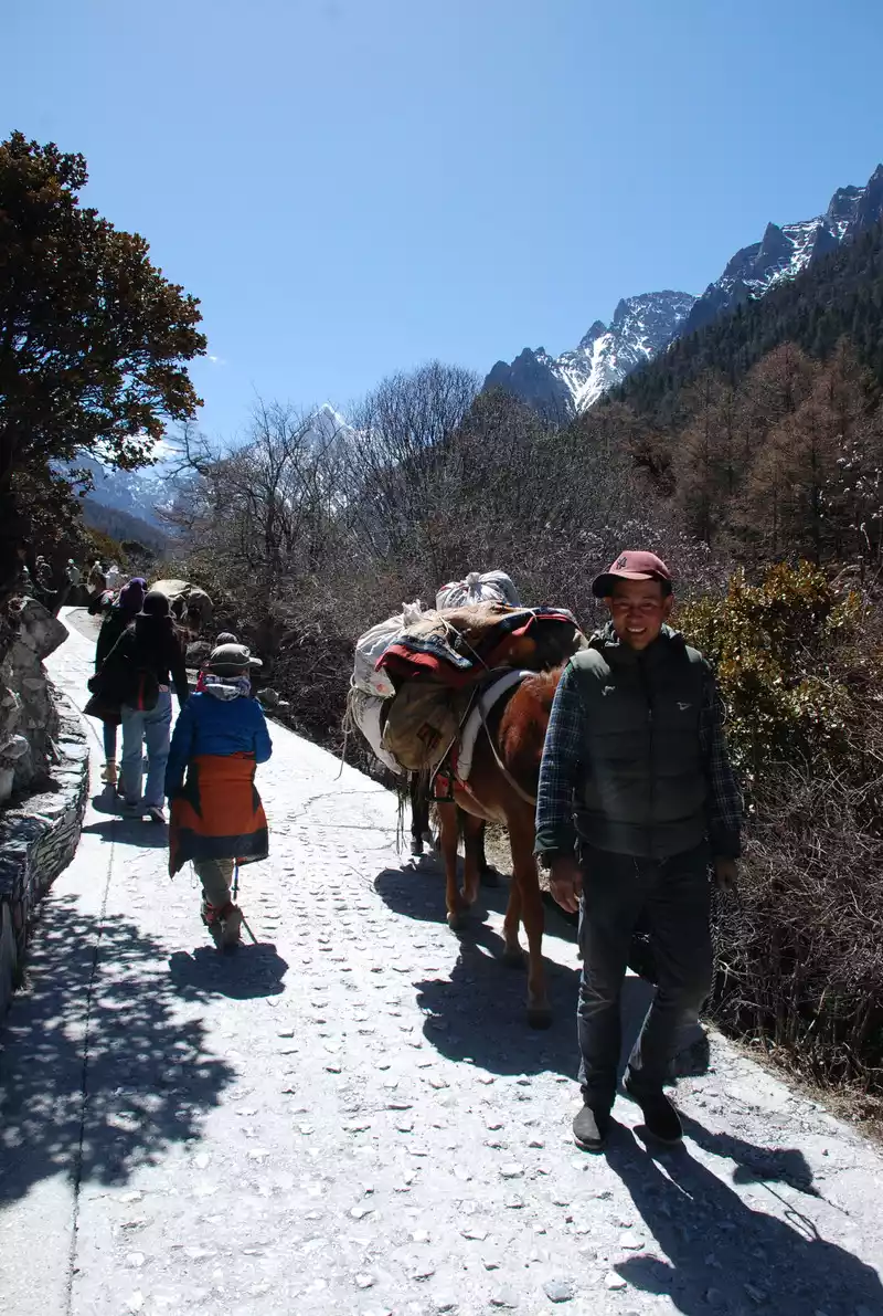 It's about to climb, there is a horse team on the side of the road, which can help you save physical strength and time, the price is expensive, but for friends who have more than enough heart and lack of strength can be considered, after all, it can help you save 1h of physical strength, although the ups and downs of this road seem to be not difficult, but after all, in the high altitude area, I don't dare to speak loudly and pant normally, it is necessary to retain physical strength, but after arriving at the position of the wooden ladder, I can only climb by myself, and it is also the most difficult beginning.