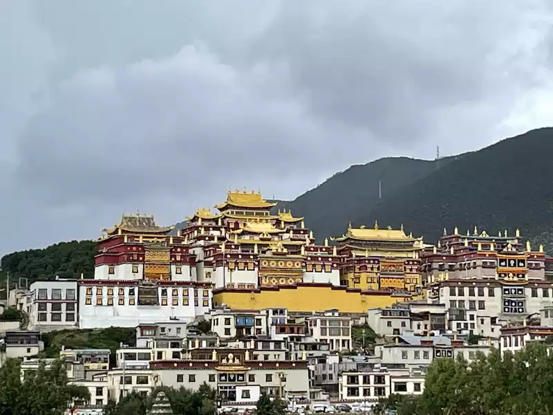 It is still early, and before arriving at the ancient city of Dukezong, I went to Songzanlin Temple, which is the largest Tibetan Buddhist temple in Yunnan Province, one of the famous monasteries in Kham District, and the center of Huangjiao in Sichuan and Yunnan. Songzanlin Temple is built on the mountain, shaped like an ancient castle, which is a masterpiece of Tibetan plastic art and is also known as the "Tibetan Art Museum".