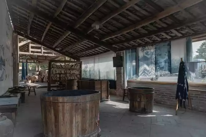 The indigo dyeing in Mingyue Village is famous, and it is a must-miss, and even addictive "game" - dipping the tight pure white fabric into the dark dyeing vat. Through continuous and thorough massage, the dye invades every space of the fabric, and then uses the power of oxidation to coat it with a unique blue.