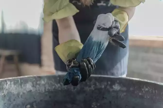 In the huge dye vat, there is a dye that can give the soul, and the smell made of plants and trees goes straight to the depths of the nose, and it is unforgettable.