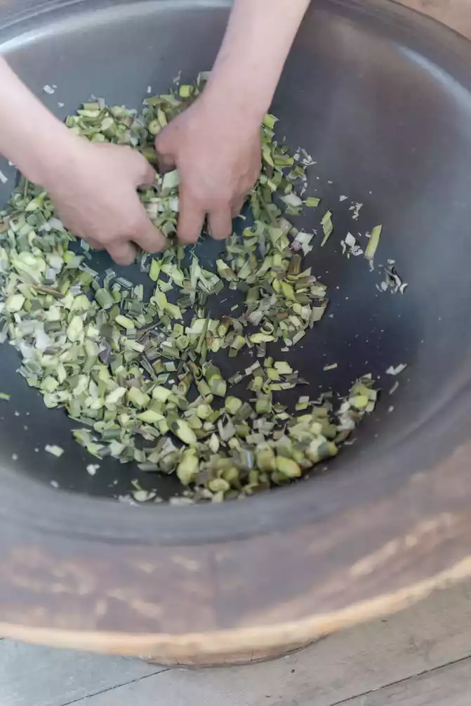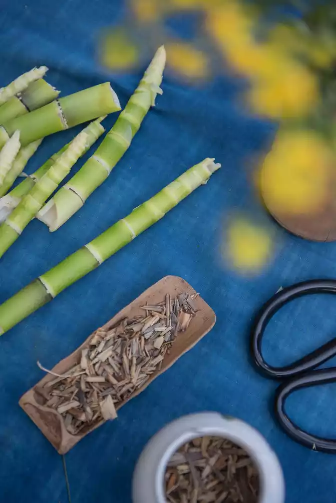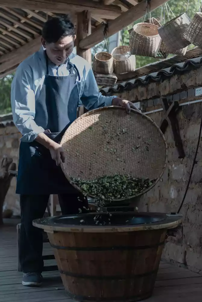 In the "Lan Dyeing" workshop, there was also a slightly shy uncle, and when we were chattering in front of the dyeing vat, he began to fry a pot of sweet tea.