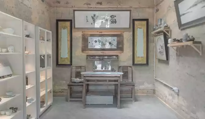 The wooden fence gate of "Shushan Xiaozhu" isolates this handicraft workshop from the hustle and bustle outside. In the courtyard, several stone slabs lead people to several old houses, which display some ceramic utensils with simple design and exquisite craftsmanship, and under the glass roof next to it is the Shushan Kiln Ceramic Art Museum with the theme of "Living Museum".