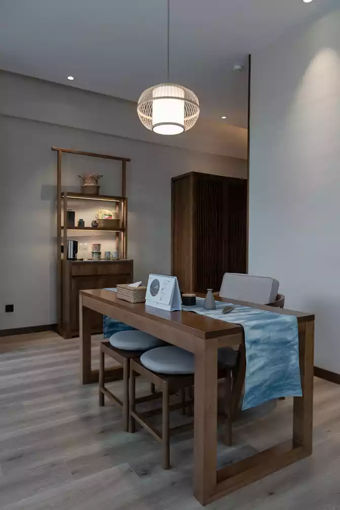 Entering it along the small bridge and flowing water, it is quiet and comfortable, and the steps become quiet, and the room next to the tea garden is dotted with the surprises of Mingyue Village: indigo dyeing handicrafts, exquisite ceramic utensils, and ubiquitous bamboo art, all of which make people read the simplicity in the delicacy.