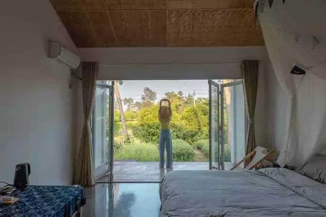 a room in an unnamed simple house, reserved for destined guests. The design is not luxurious, retaining maximum contact with nature, from getting up to the tea garden, only 2 steps away, before waking up, it has already entered the next part of the journey.