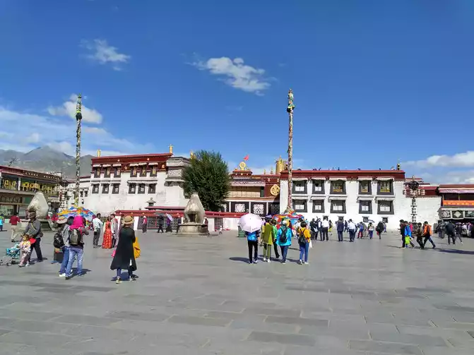 The days in Lhasa are really long! The sun was already shining brightly at 8 o'clock in the morning, and the sky was still not dark at 9 o'clock in the evening. It only takes more than ten minutes to walk from the hotel we are staying in to Bugong Square.