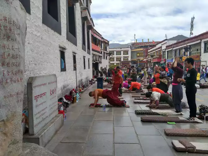 Every morning, before dawn, a large number of Tibetan believers kowtow their heads, and they have to kowtow 110,000 times in this one temple, which is a challenge for anyone.