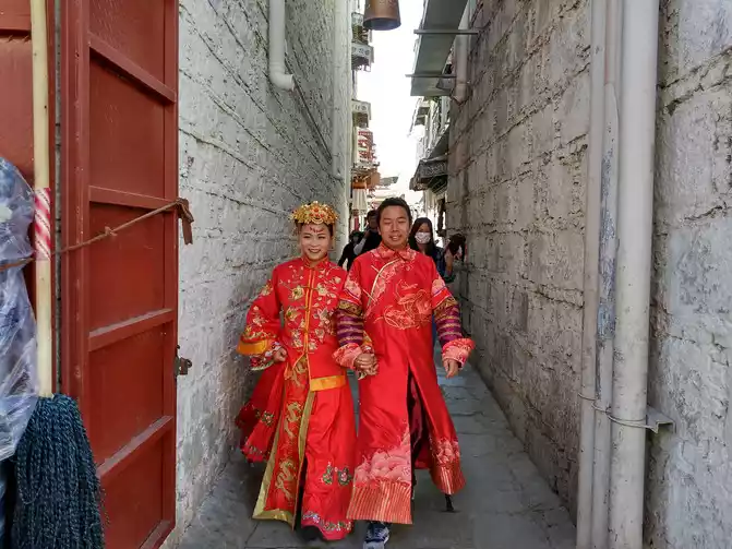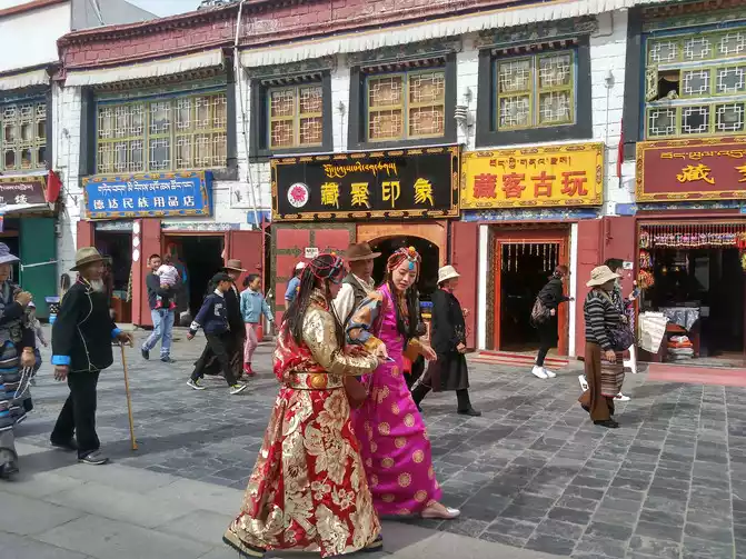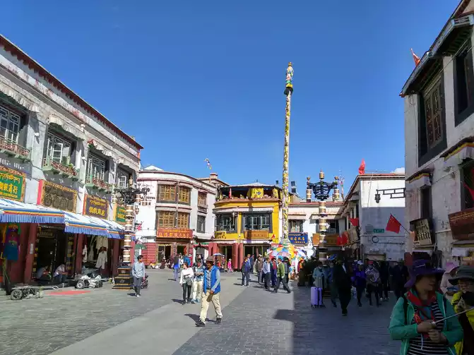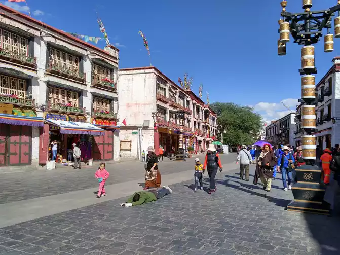 Bakhor Street is a turning point around Jokhang Temple, which Tibetans call the "holy road". Every day, many Tibetans turn around the temple clockwise along Bakhor Street.