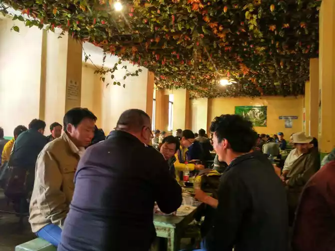 The Guangminggang Qiongtian Teahouse next to Jokhang Temple Square is a very famous teahouse, which is full of locals and foreign tourists every day. The sweet tea you drink is actually milk tea, and it is still interesting to go to a sweet teahouse to experience the process of drinking tea. The shop hall is full of long tables and benches, so they all sit together. First of all, find an empty seat and sit down, then go and get a clean cup and put it on the table, put change. As long as the cup is empty, there will be a waiter to pour tea, 8 cents a cup, if you don't want to drink it, put the money away.