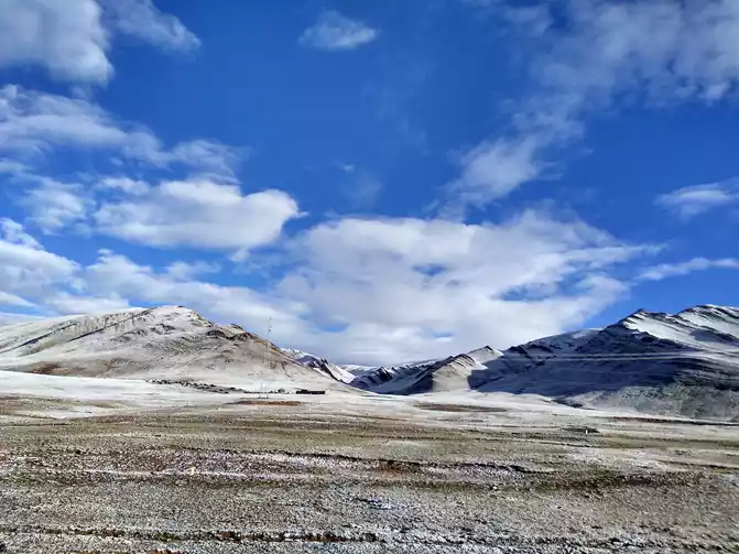 one day, several mountain passes were crossed, all at an altitude of more than 4,500 meters. The snowy mountains are close at hand, the snow is at your feet, the blue sky is transparent, the white clouds are like fluff, the sun is shining, the hail is sudden, the climate change is diverse, and the scenery is diverse. Excited countless times, moved countless times, G318 is really a beautiful landscape avenue.