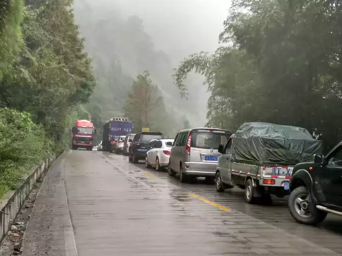 ,Ya'an is really a veritable rain city, it started to rain last night, and it has not stopped. Today we have embarked on the Sichuan-Tibet Line, the true Chinese landscape avenue G318. It was raining all the way out of Ya'an City, and the two-way National Highway 318 was very slippery, but there were not many cars. Soon in Tianquan County, the expected bad road finally appeared, due to poor foundation conditions, many heavy trucks, and the climate was more extreme, road construction became a job that only started and did not end, and car accidents and traffic jams were also common.