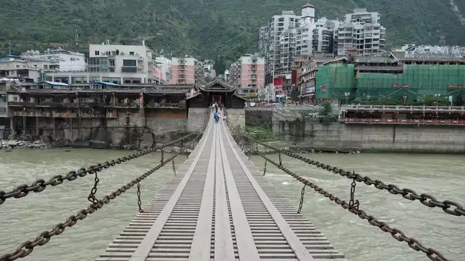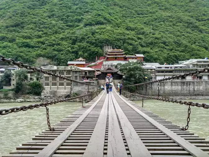 Luding Bridge was built in the forty-fourth year of the Kangxi Dynasty of the Qing Dynasty (1705 AD). This is a ferrata suspension bridge, consisting of a stone east-west abutment and 13 horizontal iron cables, 13 iron cables connected by 12,164 iron buckles, weighing about 21 tons. The Luding Bridge is 101.67 meters long and 3 meters wide, and there is a Luding Bridge stele made by the Kangxi Emperor of the Qing Dynasty on the east side of the bridge, which records the beginning and end of the bridge.