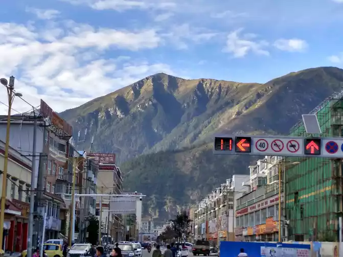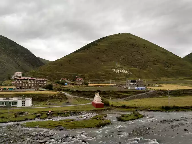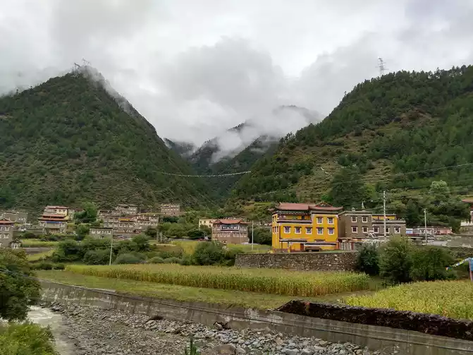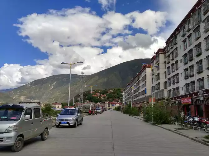 Today's destination is Xindu Bridge, which has the reputation of "photographer's paradise", and the scenery on the road gradually takes on the characteristics of Tibetan areas, as well as residential buildings.
