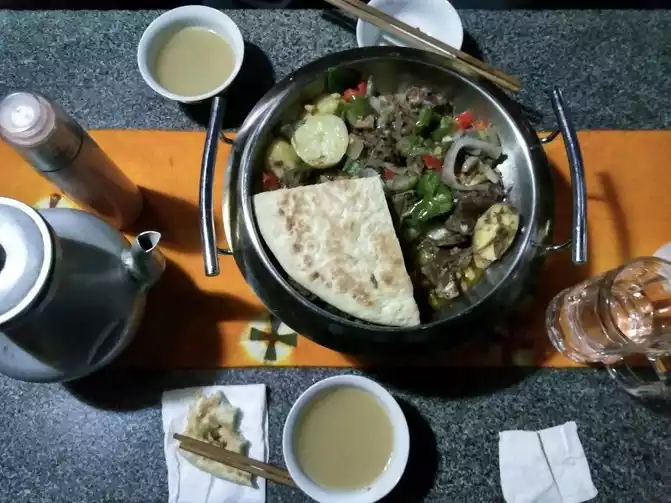 We stayed at Sobo Zangjiazhuang, and the owner was a Tibetan girl named Ram. The Tibetan meal for dinner is called "beef cover", drinking butter tea, and tasting a little highland barley wine, living a real Tibetan life. After a short break of tea and food, I took a bath, and the bed was covered with an electric blanket, and it felt very good to go to bed. Video chatting, a glass of milk before going to bed, leisurely, a good dream.
