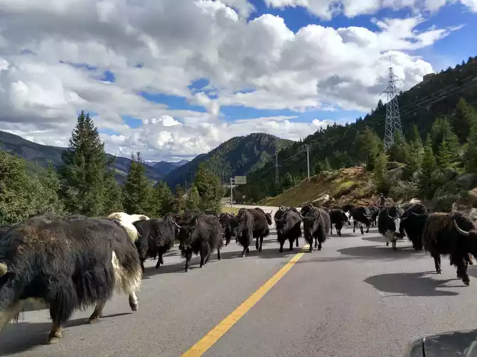is common to see yaks or sheep wandering on the road, you have to stop to give way, don't rush, the consequences will be very serious.