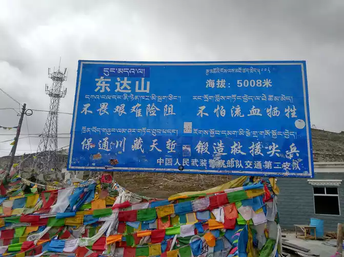 After crossing Jueba Mountain, the mountain began to flatten, the road was no longer winding, and the sides became open. Soon we came to the second highest mountain of G318, Dongda Mountain, which is the most lingering mountain on the Sichuan-Tibet line, and it takes about two or three hours to walk. Dongda Mountain Pass is the first pass on the G318 at an altitude of more than 5,000 meters, the pass is very windy, the temperature is close to zero, and you will not be able to stand it after walking outside the car for a while.