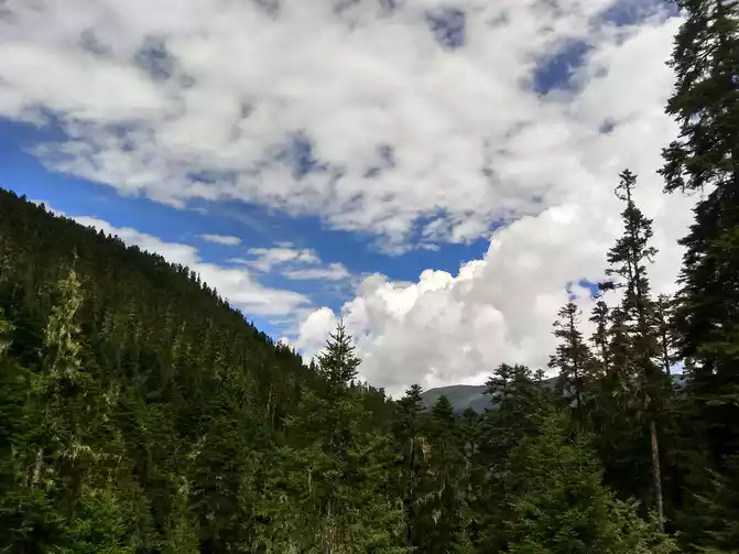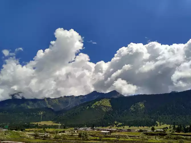 The planned trip to Laigu Glacier or Midui Glacier was canceled due to rain and rotten roads. Ranwu to Bomi is the most beautiful section of the Sichuan-Tibet Highway, with lush forests and gurgling water along the way. The autumn boulevards make it hard to believe that there is such a scenery in the plateau area, all the way into the beautiful town of Zhamu (2,725 meters above sea level), a beautiful town surrounded by snow-capped mountains and forests, where the fresh air is called "Tibet's Little Switzerland".