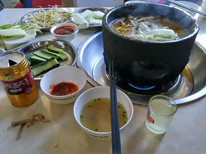 Every restaurant in the town has stone pot chicken, the hotel owner recommends this one, when I entered the store, the stone pot chicken was stewing on the fire, beautiful.